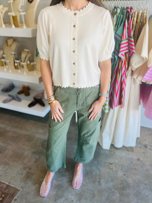 BLUE CHINA COLLAR SHORT SLEEVE TOP