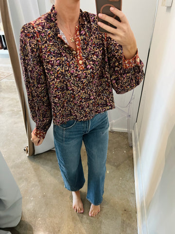 Long Sleeve Floral Button Top