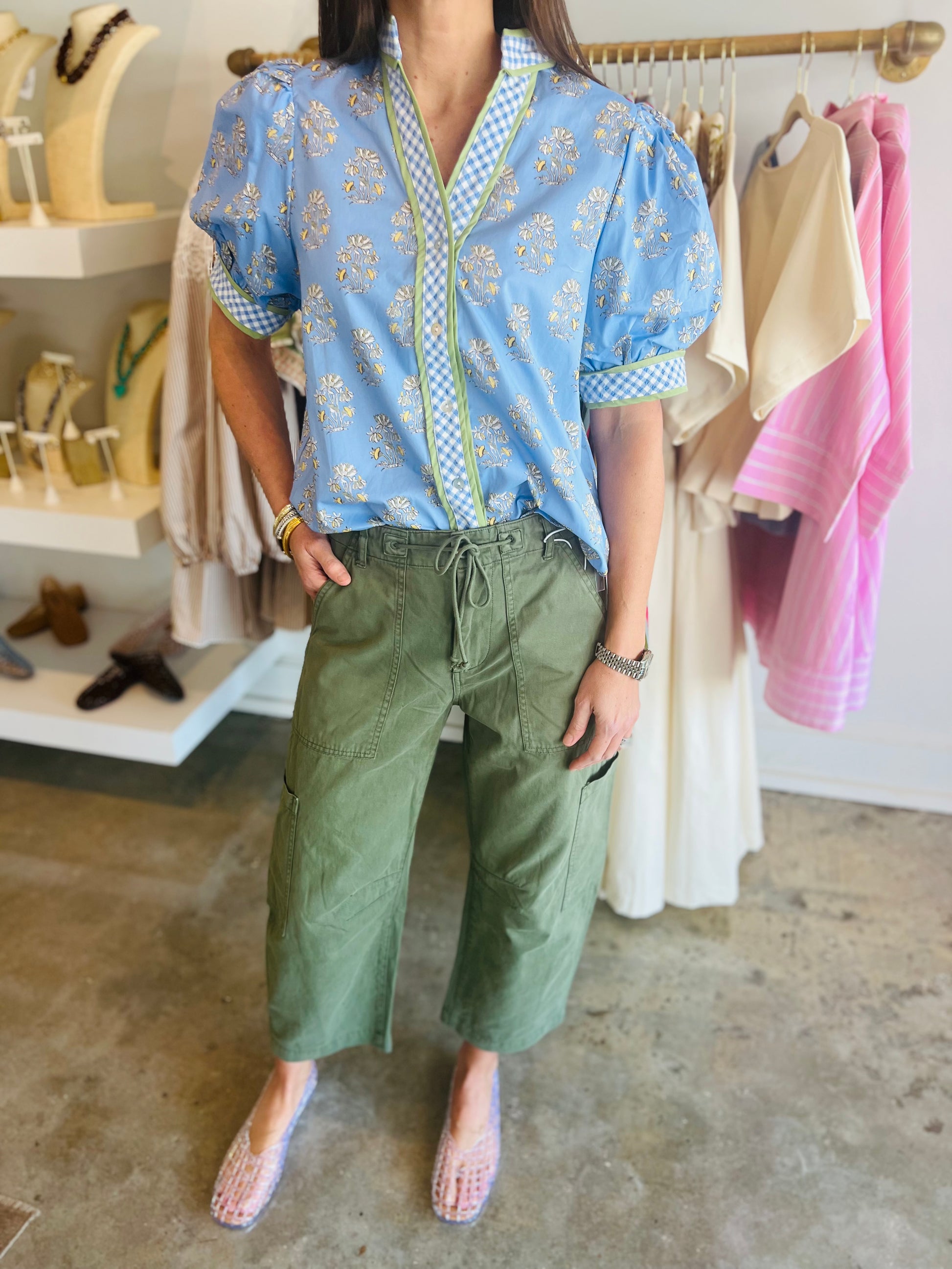 Blue Floral Gingham Blouse