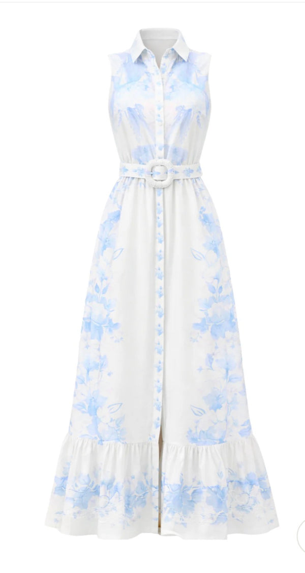 - Fit: Maxi dress with a collared neck and center front buttons. Elastic waist and a fabric covered removable belt. Pockets. Fully lined. Measures 58" from shoulder point for a full length maxi. Gorgeous lightweight linen fabrication has minimal wrinkling.