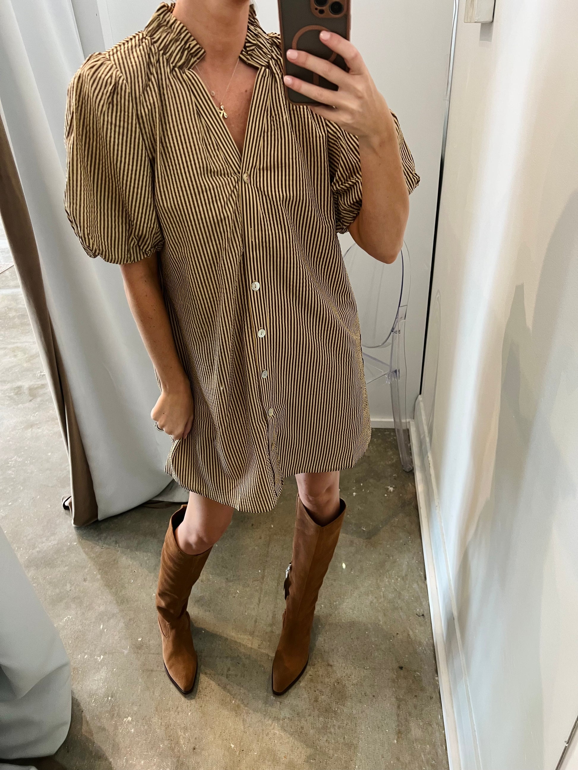 Puff Sleeve Striped Dress